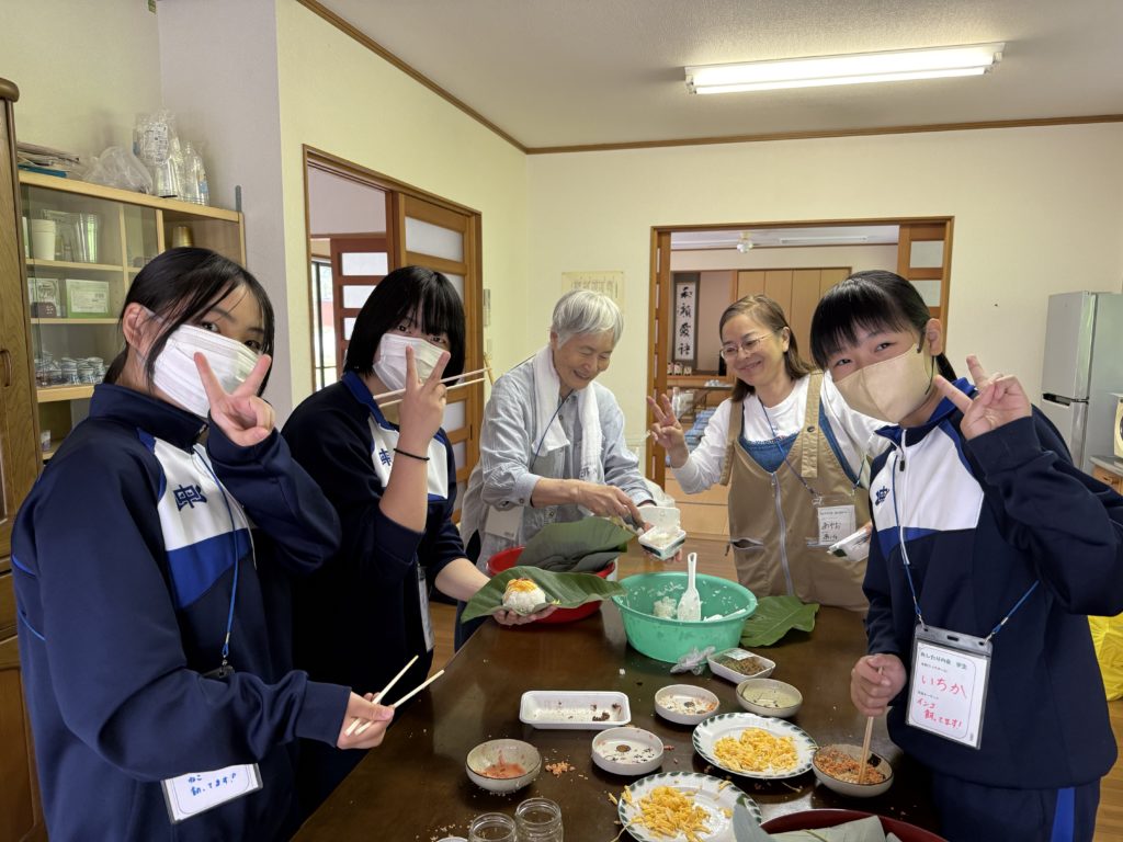 それから,これも毎年恒例なんですが中学生たちやオーナー様がほうば寿司づくりを手伝ってくれたんですよ🙏
