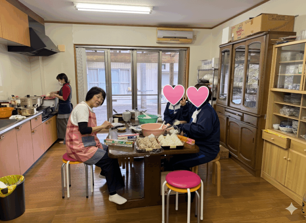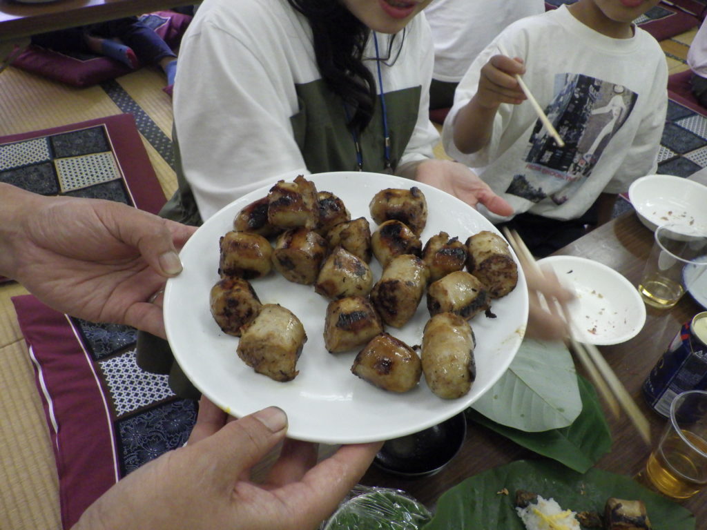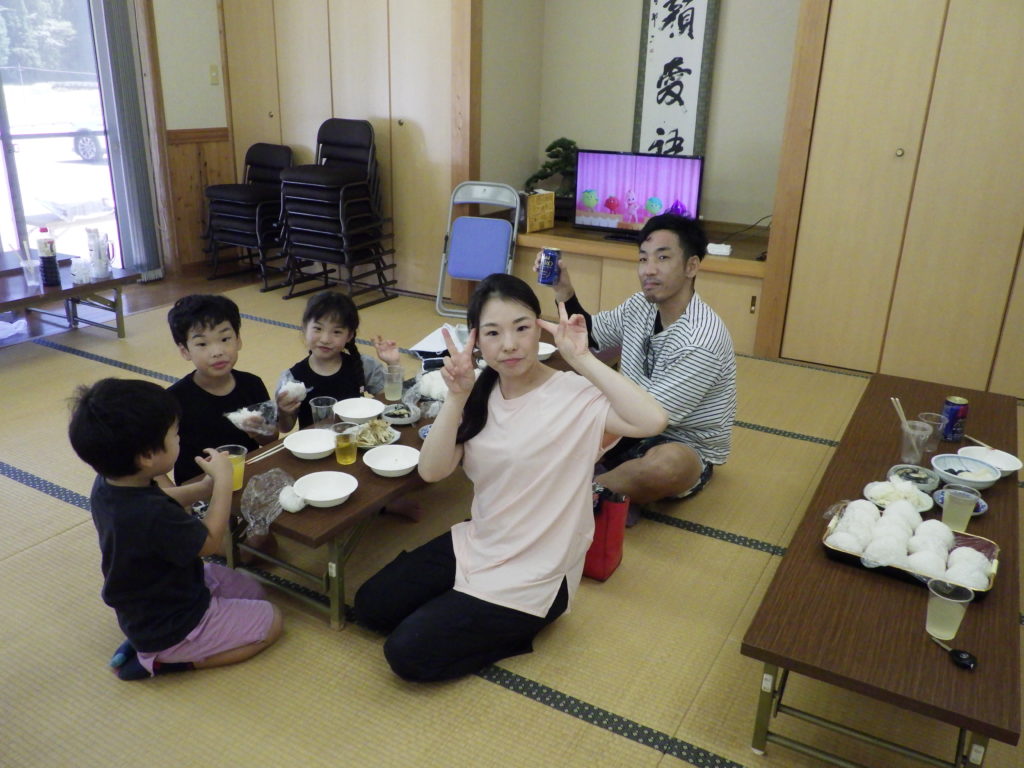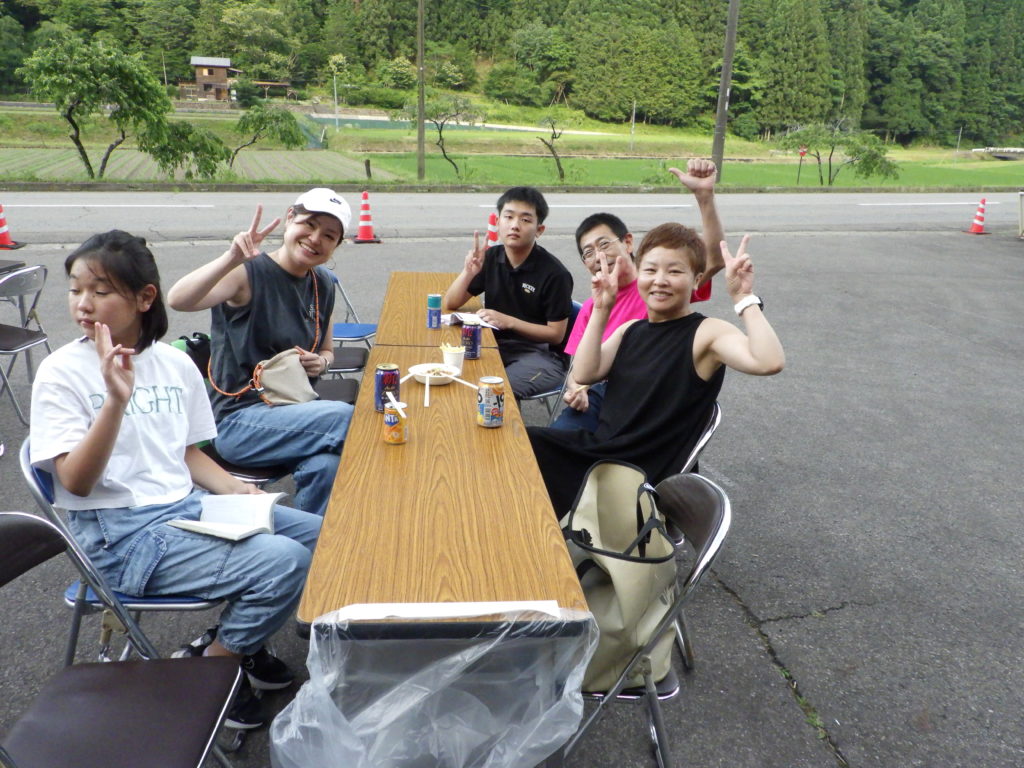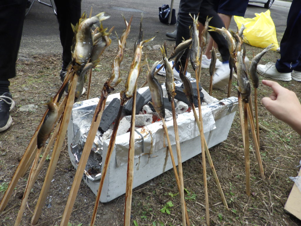 この日は天然鮎の塩焼きもありました。このくしに刺す作業は中学生がお手伝いしてくれました。それからいつものようにおにぎりをにぎる作業も中学生やオーナー様が手伝ってくださいました。🍙🍙🍙