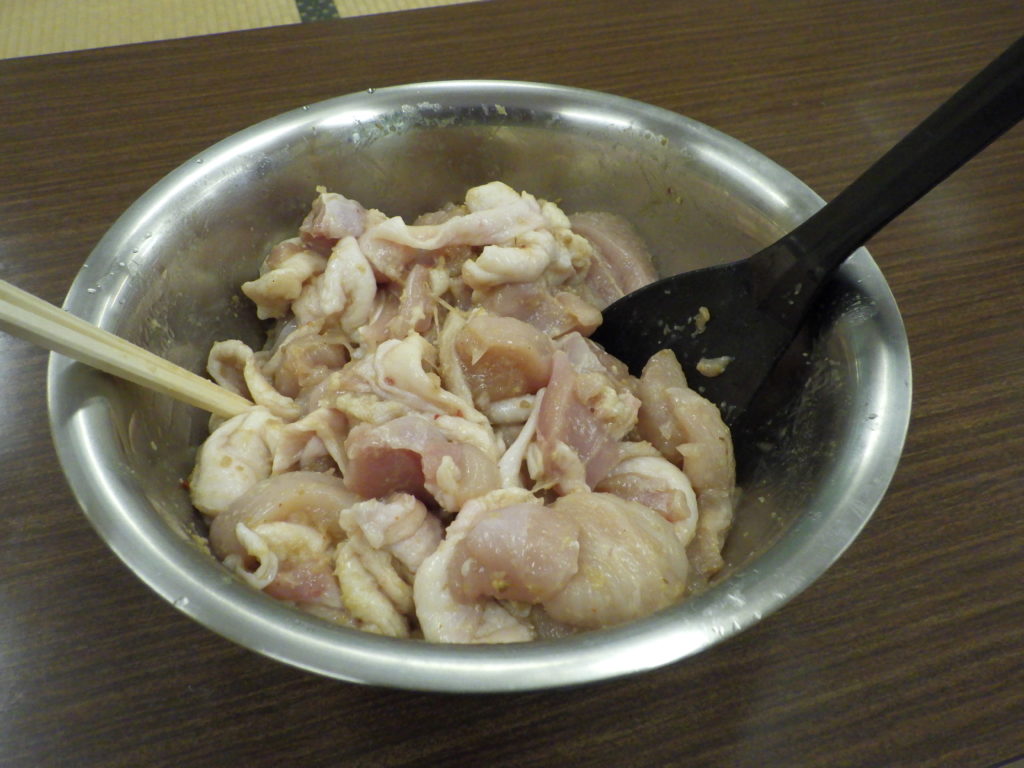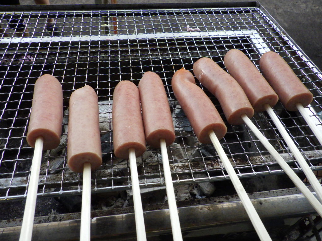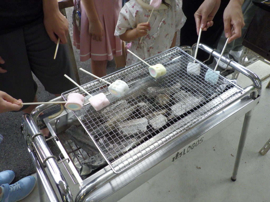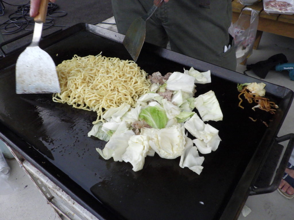 提供した食べ物は,鶏ちゃん・名宝フランク・焼きそば・焼きおにぎり・マシュマロ(焼き)・枝豆・フライドポテトなどです。今回は出来上がる前の素材を中心に画像をあげておきます。