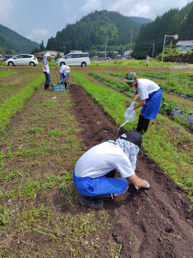 7月4日。市内の中学生が労働体験として「あしたりの会」を選択してくれたので3名を迎えて一緒に作業しました。