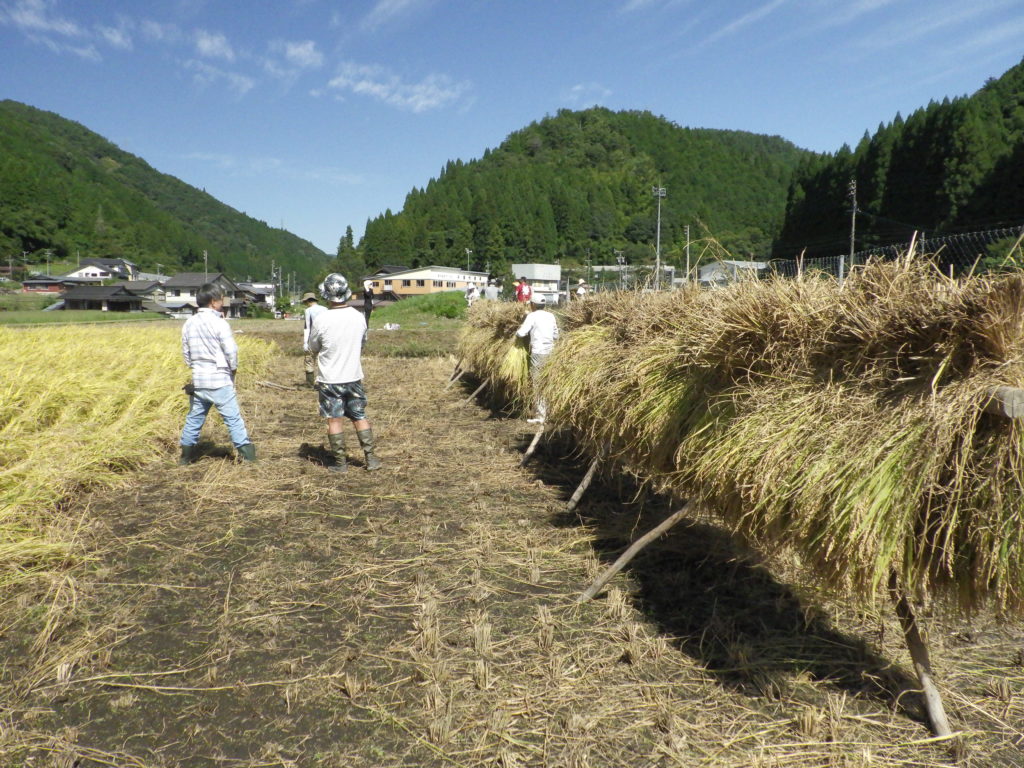 さてこうして手で植えた場所の稲刈りから「はさかけ」までの作業が無事終了しました。なかなか大変な作業なのですが,皆さんには楽しげに作業していただき嬉しかったです。あちこちで歓声もあがってました。
