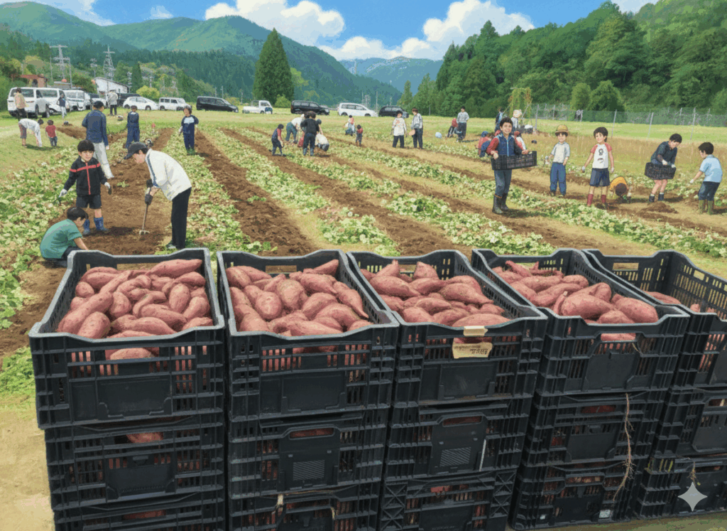 さらに今回は収穫した芋を集荷場まで手で運んでもらいましたよ。まさに重労働でしたね。お疲れ様でした。
