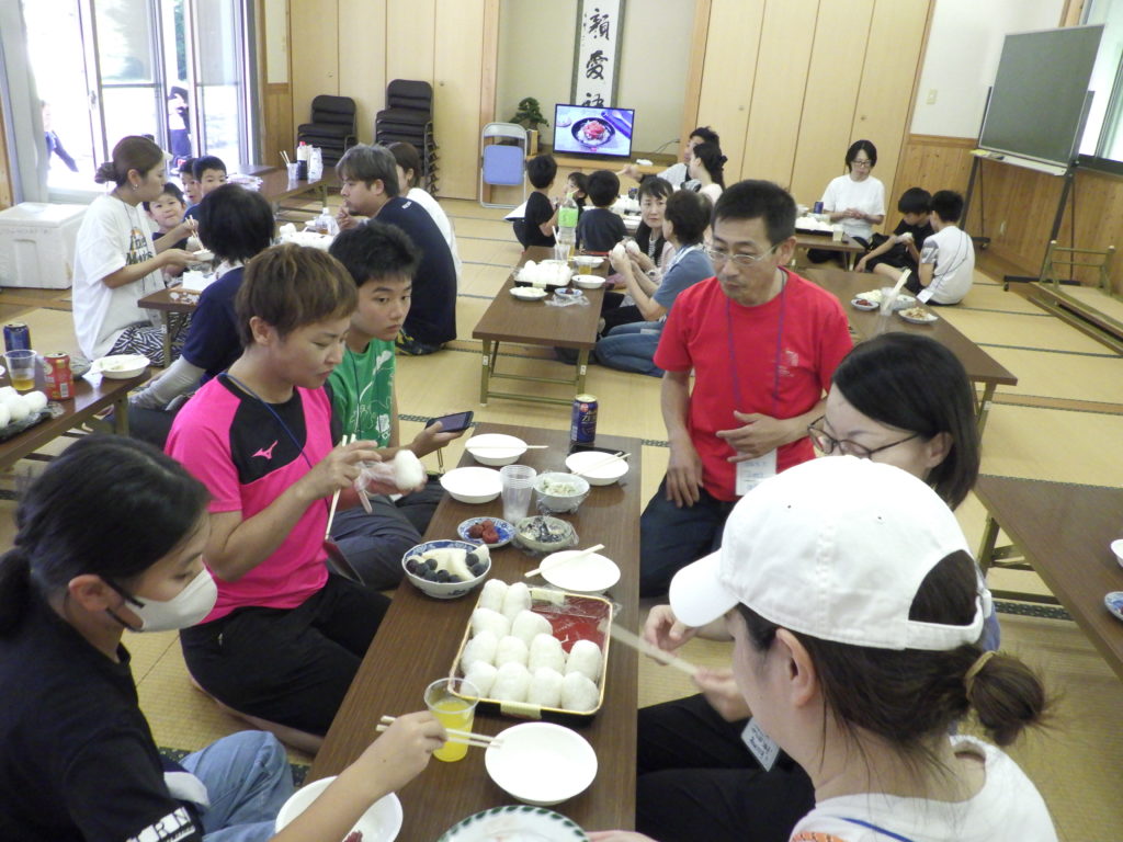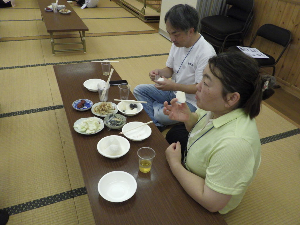 この後はいつも通りに場所を変えて今年の新米おにぎりを主食に昼食会に移りました。