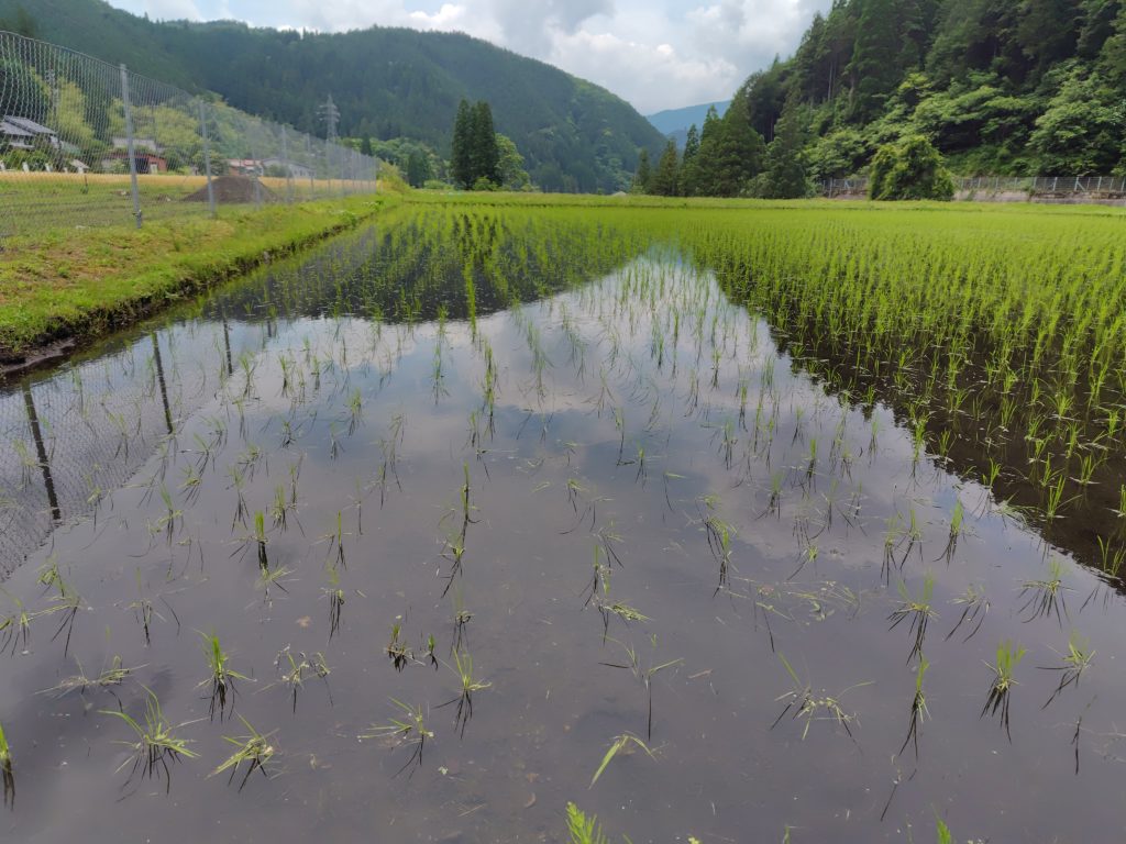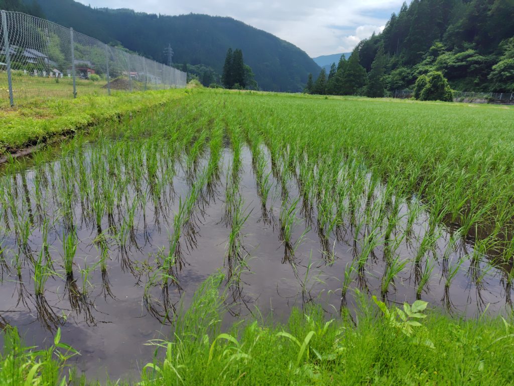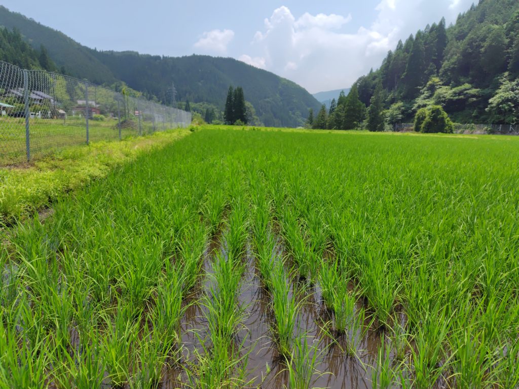 前の写真から1ヶ月も経っていないのですが一気に田んぼらしくなりました。私たち「ヒト」からすると連日の熱中症アラートでもう泣きそうな位の暑さでなのですが稲をはじめとする植物たちには嬉しい暑さなんでしょうかね?すごい成長です🌾🌾🌾